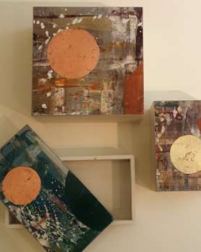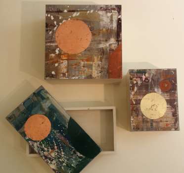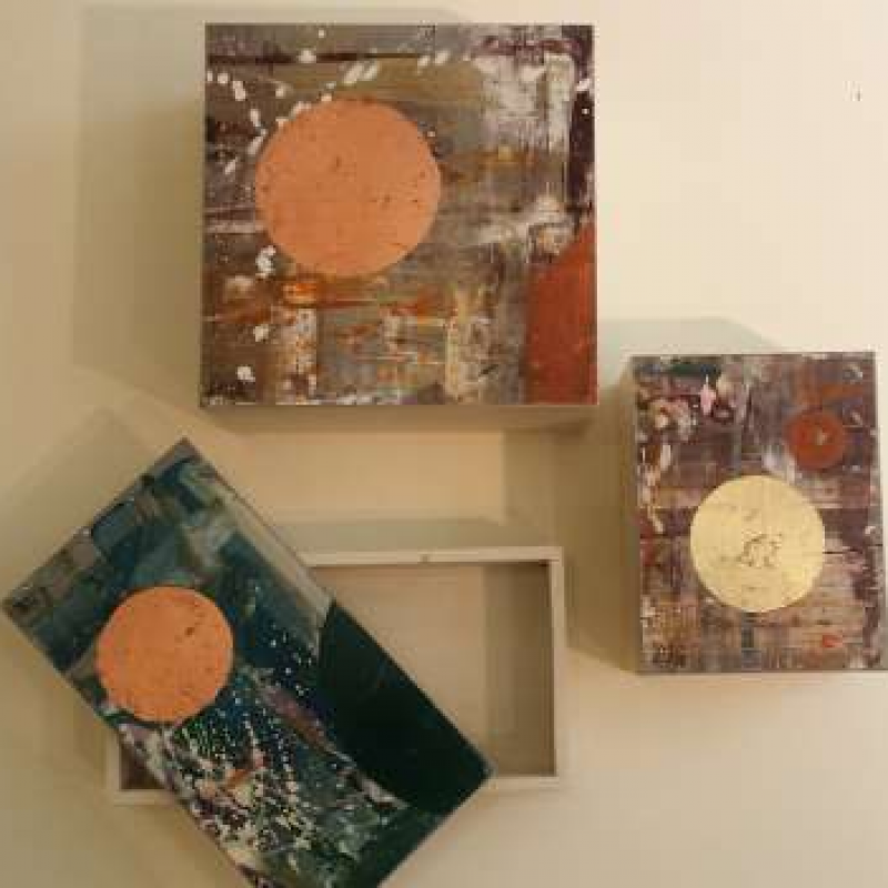 L’oggetto nasce dal recupero dei cartoni che sono stati i piani di lavoro dell’artigiano; nel tempo “si sono sporcati” di colore e materie delle varie lavorazioni che su di essi sono state svolte, caricandosi così di esperienza. La creatività artistica fa nascere un’ampia linea di oggetti dal grande valore estetico ed artistico; elementi in rame, argento, orone, lo impreziosiscono ulteriormente.