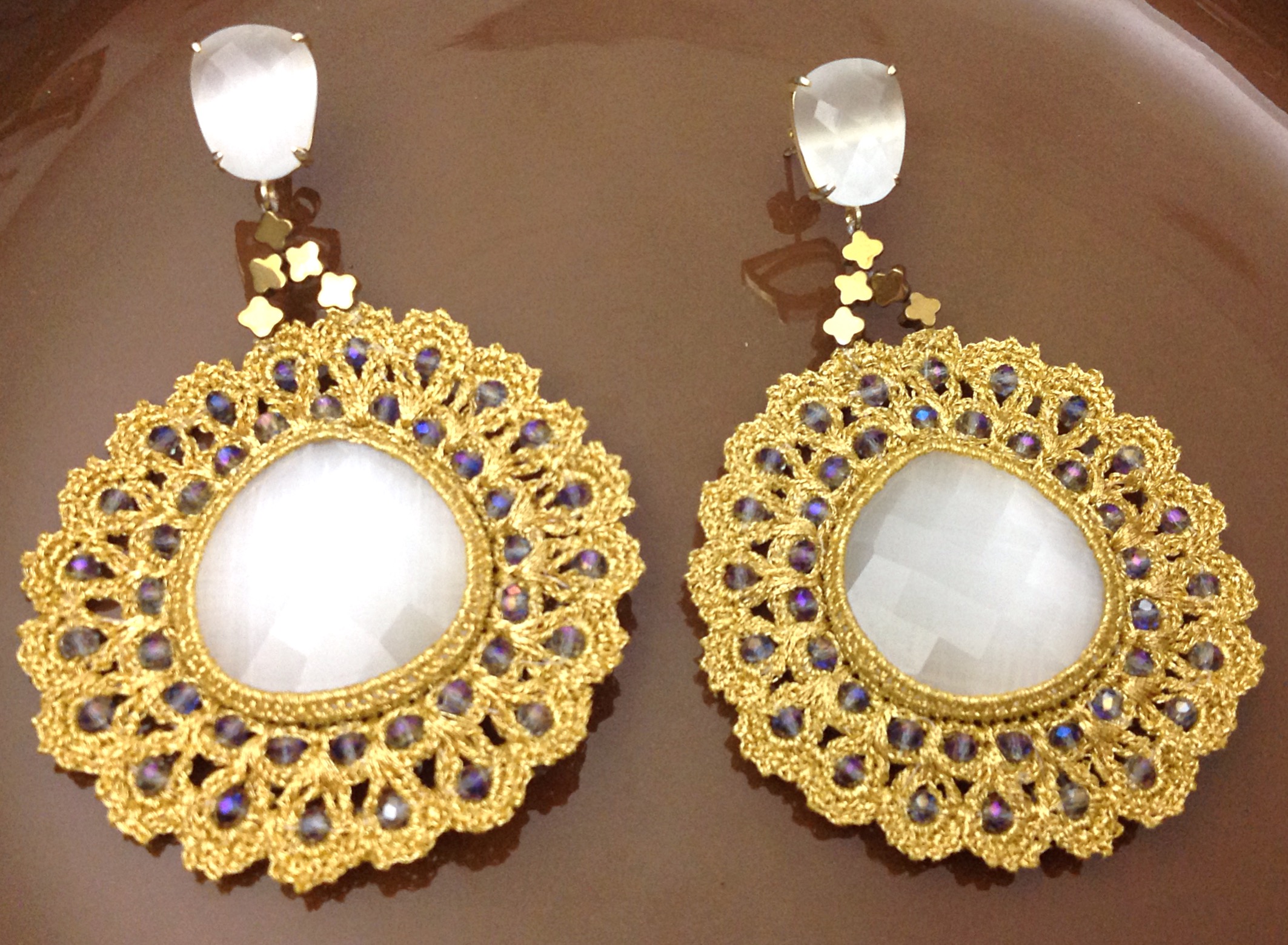 Orecchini in macramé realizzato a mano, con inserti di cristalli ed ematite