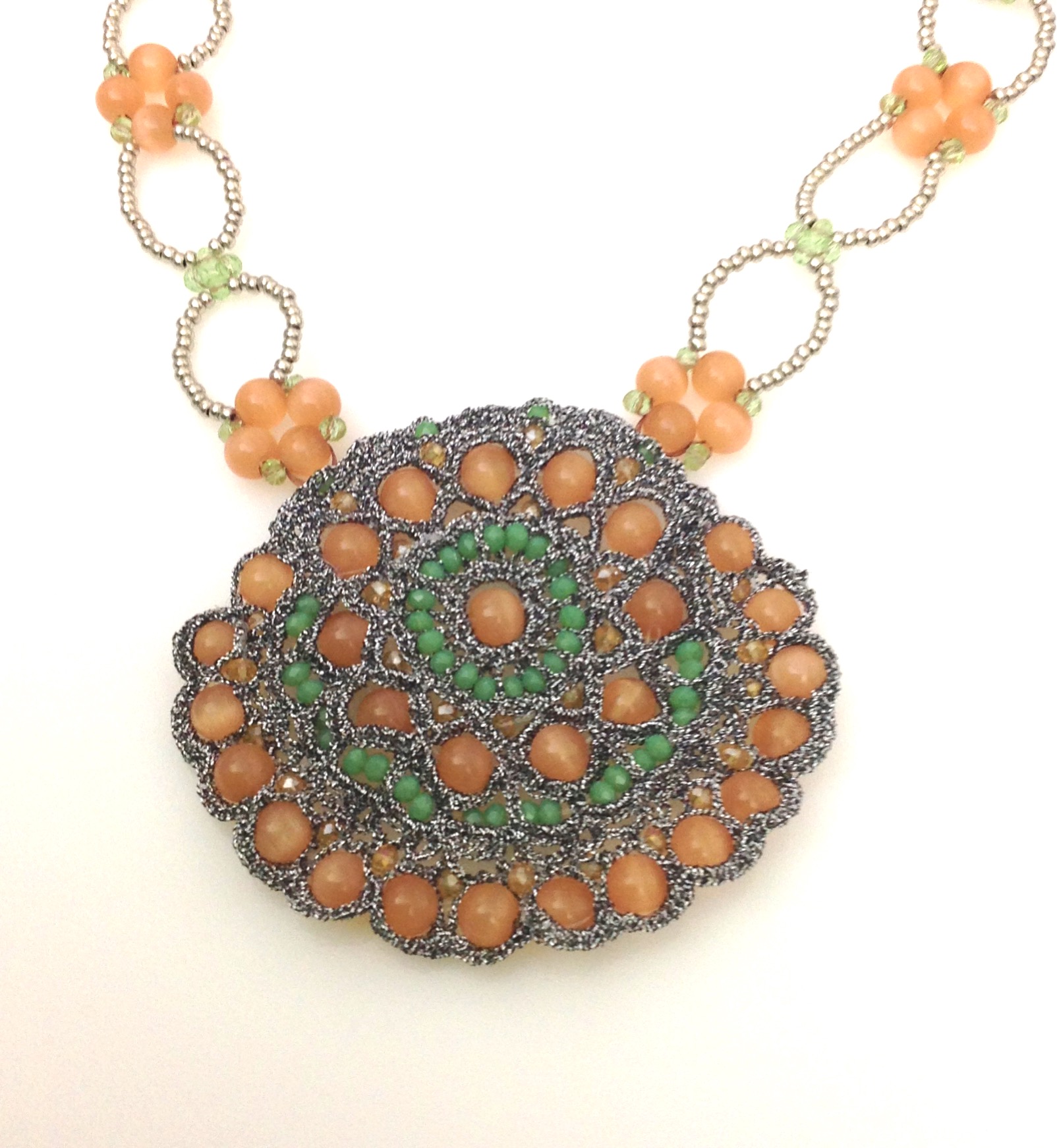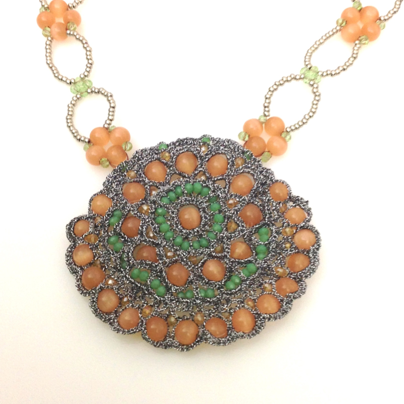 Collana in macramé realizzato a mano con inserti di cristalli